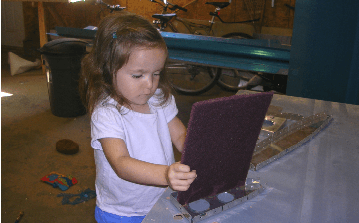 Emma put the rivets in the holes and held the parts while I riveted. She is turning out to be a great help, and she is not even 3. She also scuffed many parts before painting. She really thought she was being a great help when she grabbed a handful of rivets and threw them in a container with totally different rivets!! Sorting cost us some time, but it was a good laugh knowing that she thought she was really helping. Gavin, not so much; he just sits there and watches with the ear muffs on. I keep passing him Cheerios now and again, and he doesn’t make a sound. If he got his hand in the rivets, he would most likely eat them!!