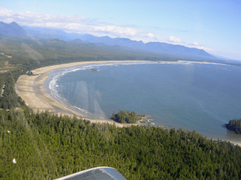 We called FSS for a weather brief to see if Tofino was open. The fog was just on the beach and things seemed to be burning off, so we made our way. There were no PIREPs through the pass to get there, so we still did not know if the ceilings were high enough to get through. It was around 12:30 pm local and the air was still quite smooth at altitude. We soon flew over Sproat Lake and saw the big Martin Mars water bombers moored in the lake. A few minutes later, we rounded the corner in the pass to see clearing skies ahead – it was open, so flying through was easy. The scenery was the best we had seen, and we could hardly sit still!