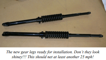 Another factor was at play this month. About a year ago, I purchased a set of coil spring gear legs to replace the bungee ones on Chrissy. The current bungee cords seem to need replacing every two years or so as they sit in the direct blast of the exhaust. Even with covers, exhaust gases and oil have been working their way in.