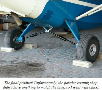 Once fully assembled, the gear was sent out for powder coating. They did a great job, but it did cost $75.00. Of course, the last step was the paperwork. In this case, an entry was made citing AC41.30-1B as the authority, and a new weight and balance was created.