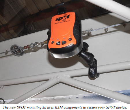 In addition to the new GPS, I came across a neat product for my SPOT device. I had made a rinky little mount for the SPOT but wasn’t really happy with it. Fortunately, I received a newsletter from SPOT which mentioned a new mounting device. For $44.95, you get a RAM mounting system that can either be suctioned onto a flat surface or clamped around a tube (0.75” to 1.25”). Having a tube aircraft, I used the latter to mount my SPOT.