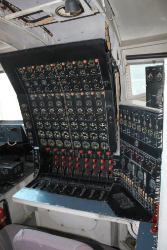 The construction details of this plane are simply fascinating. The span is 320 feet. The fuselage is massive at 30 feet high and 218 feet long. The upper flight deck alone is larger than my living room. But for a huge aircraft with eight engines, the cockpit is remarkably sparse, though beautiful in its simple functionality. On the rear bulkhead of the flight deck, I spotted a 50-gallon oil tank to provide in-flight make-up oil for the engines. Two gas-powered, hand-started generators provided power to start the first two engines. At the rear of the flight deck is an entrance to passageways into each of the enormous wings. The flight engineer could easily access the eight Pratt & Whitney 4000 hp radial engines.