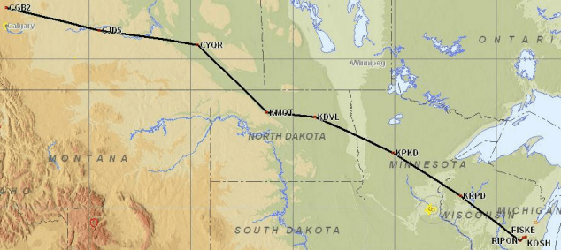 The route we took in 2008 is shown below and will likely be the same one we follow this year. Legs are kept to around 200 miles to accommodate the range of the slower aircraft. In 2008, we overnighted at Devil’s Lake, ND (KDVL), and Rice Lake, WI (KRPD), but could have easily made Oshkosh without the Rice Lake stop.