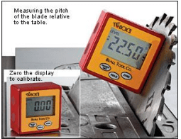 The display always reads left to right, even if inverted, and a “hold” button keeps the measurement for reference. It has a range of 90° left or right and a resolution of 0.05°. The unit is approximately 2-¼” square by 1-¼” thick, has an easily readable liquid crystal display, and can read absolute angles for measuring level and plumb or can be zeroed to set repeat angles.