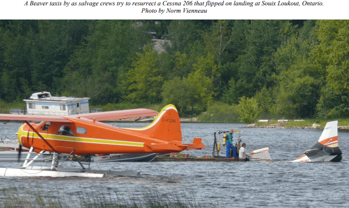 This time of year, the town of Sioux Lookout has a blueberry festival with many events for tourists and locals to enjoy. Pancake breakfasts, train rides courtesy of VIA Rail, displays by the Volunteer Fire Department, Golf Tournaments and even rides by the local float plane outfitters are all a part of the celebration. Tickets were a reasonable price, and a 15-minute flight was on the agenda. The local pilots were flying a couple of Turbo Otters, a Beaver and a couple of Cessnas. Rides started at 10 am and were to continue until 2 pm. Winds picked up as the day progressed and a Cessna 206 ended the day inverted in the bay. The pilot and 4 passengers escaped any major injuries and were all quickly picked out of the water by a pontoon boat. Reports are unclear as to the cause of the incident and we will have to wait for the report from the Transportation safety board to determine what really happened.