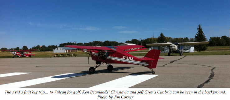 I have since been to Vulcan for golf with Ken Beanlands, Jim Corner, and Jeff Gray and the plane handled the trip much better than I. The Avid is back in the air where she belongs and I am still learning the little things about her that make her unique. The small wing makes her much faster than anything I have flown before and she requires my full attention. I continue to learn and advance my flying skills.