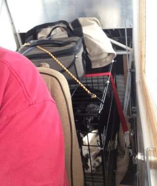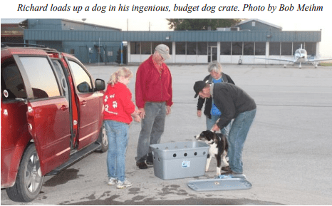 Richard came up with an ingenious idea. With no crates readily available, he bought three Rubbermaid bins large enough to house the medium sized dogs.