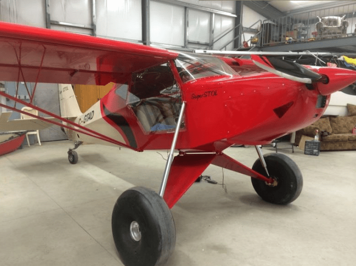 The SuperSTOL has a Rotax 914 with an 84×41 Catto prop. It produces 115hp and will hold 100hp all the way to 16,000ft. It weighs 897 lbs. On dry pave, it starts to slide at 5000rpm with the wheels locked up (Ed note: maybe he needs bigger tires!). Taxi tests showed a very well handling airplane on the ground. The tail comes up very fast and it tracks extremely well. It has a full swivel tail wheel, nice to know that it behaved fine with no linkages. It should be a lot of fun to fly.