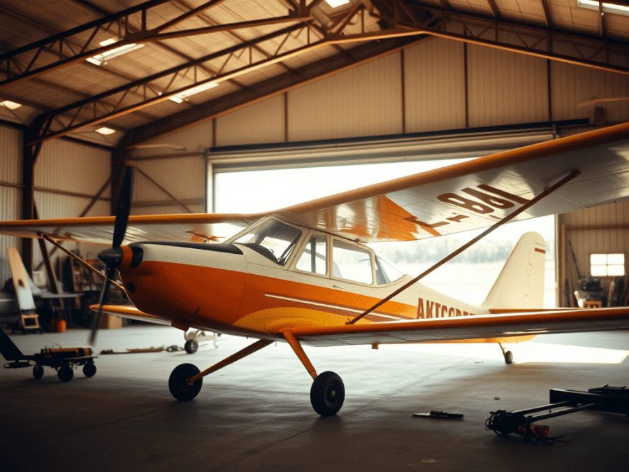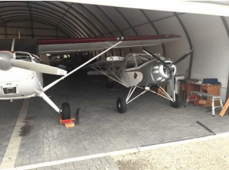 With the wings folded I’m able to store it inside, tucked under Richard Schmidt’s Stinson 108-2.