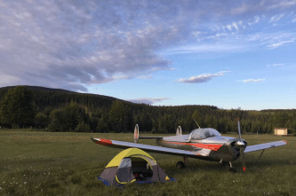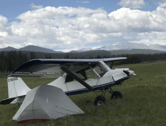 “It” was flying to the Red Deer Forestry strip and camping out under the wing overnight. In 2016, three of us made the attempt. Sheldon P, Ryan and I tried. We headed out in the afternoon hoping the temperature had dropped enough to improve the Density Altitude value. We had all just called “All OK”, as we were over Sundre when Ryan literally fell from the sky in his VW powered Sonex. No time to make a call, but a safe landing was made, and so Sheldon and I landed as well.