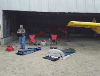 Rob was thinking ahead and brought a small step ladder to make refueling that much easier. A tent may be not necessary if you enjoy sleeping out in the open like we did but should have one if weather turns. Again, a good air mattress or a folding cot is a must. Don’t rely on your plane’s seat cushions to give that restful sleep! Head mounted flashlights would be an asset; leaves your hands free to do “paperwork”. Also suggest tie downs as well. We did not use them that night but again we all know how the weather can change in Alberta.