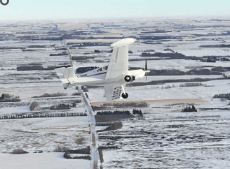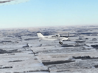 It was a beautiful day for flying as I took off. Winds were calm, clouds few and the sun bright. As I climbed to 4500’ I called Stu, and he told me he was just east of Carstairs. Perfect timing!