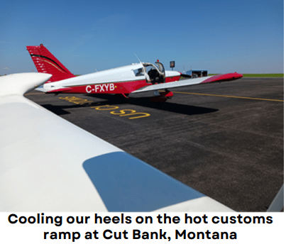 A few minutes later I set the Cav down well behind Kirkby and Forman on Cut Bank’s runway 14, and slowed enough to make the intersection taxiway. We rolled to the customs ramp, shut down, and opened our cockpit doors to stay cool in the warm morning sun as we waited for the customs officers to appear.