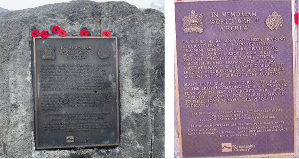 The photos and screen shots tell the story of a doomed Anson and its RCAF crew. The plaque nicely underlines the training risks involved and understates an incredible multi-day rescue and survival story. The screen shots or a Google search give welcome amplification to the details given. No STARS flew to Mount McDougall then!