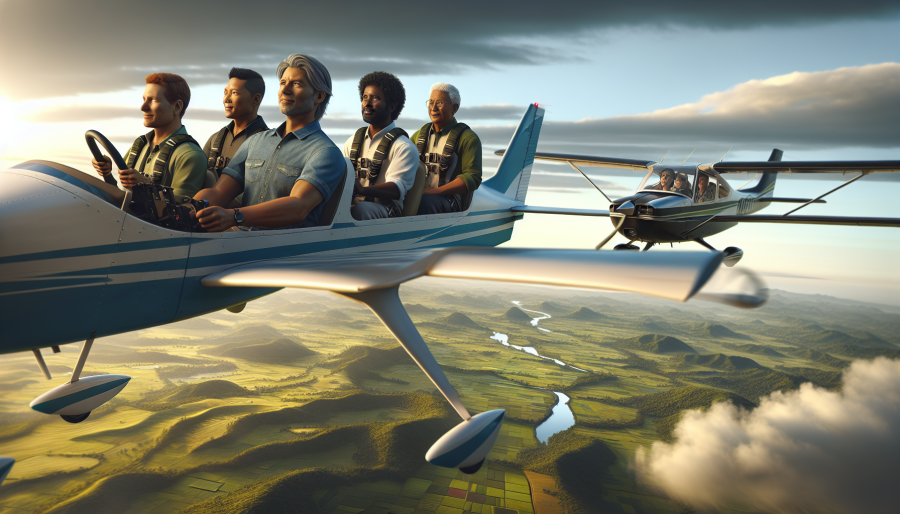The perfect flying conditions on a beautiful day led a trio of ultralight pilots on a scenic adventure. They captured stunning aerial images, engaged in formation flying, and visited a gliding club. Their journey included laughter, picturesque views, and impressive aerial maneuvers, creating an absolute joy of a flight.